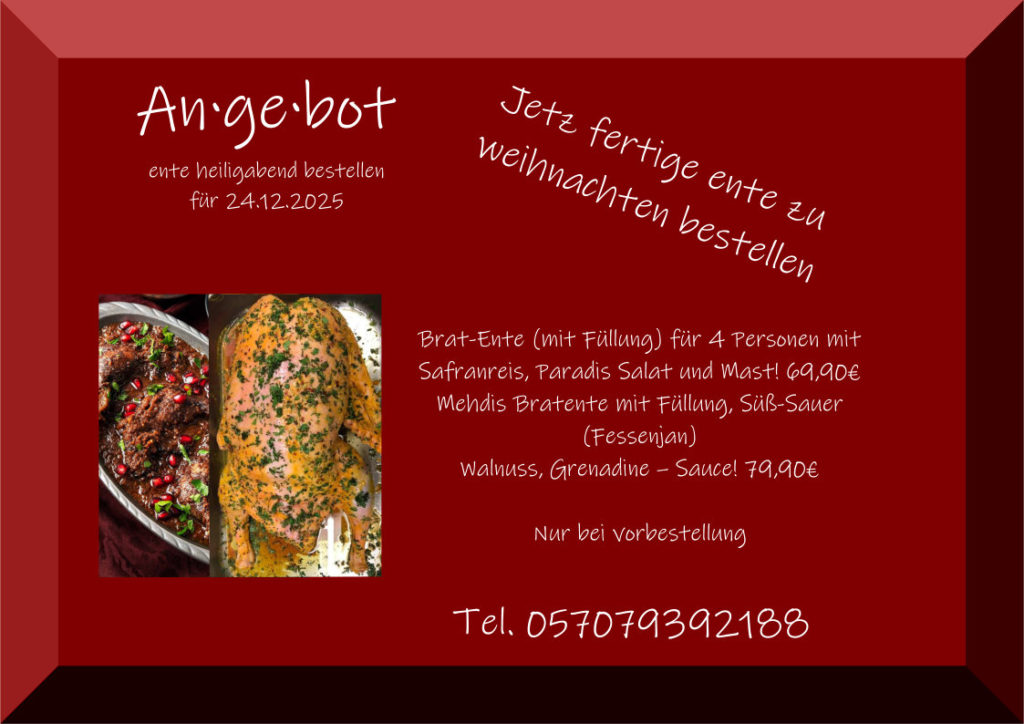 Mehdis Bratente “ bitte 2-3 Tage im Voraus bestellen „